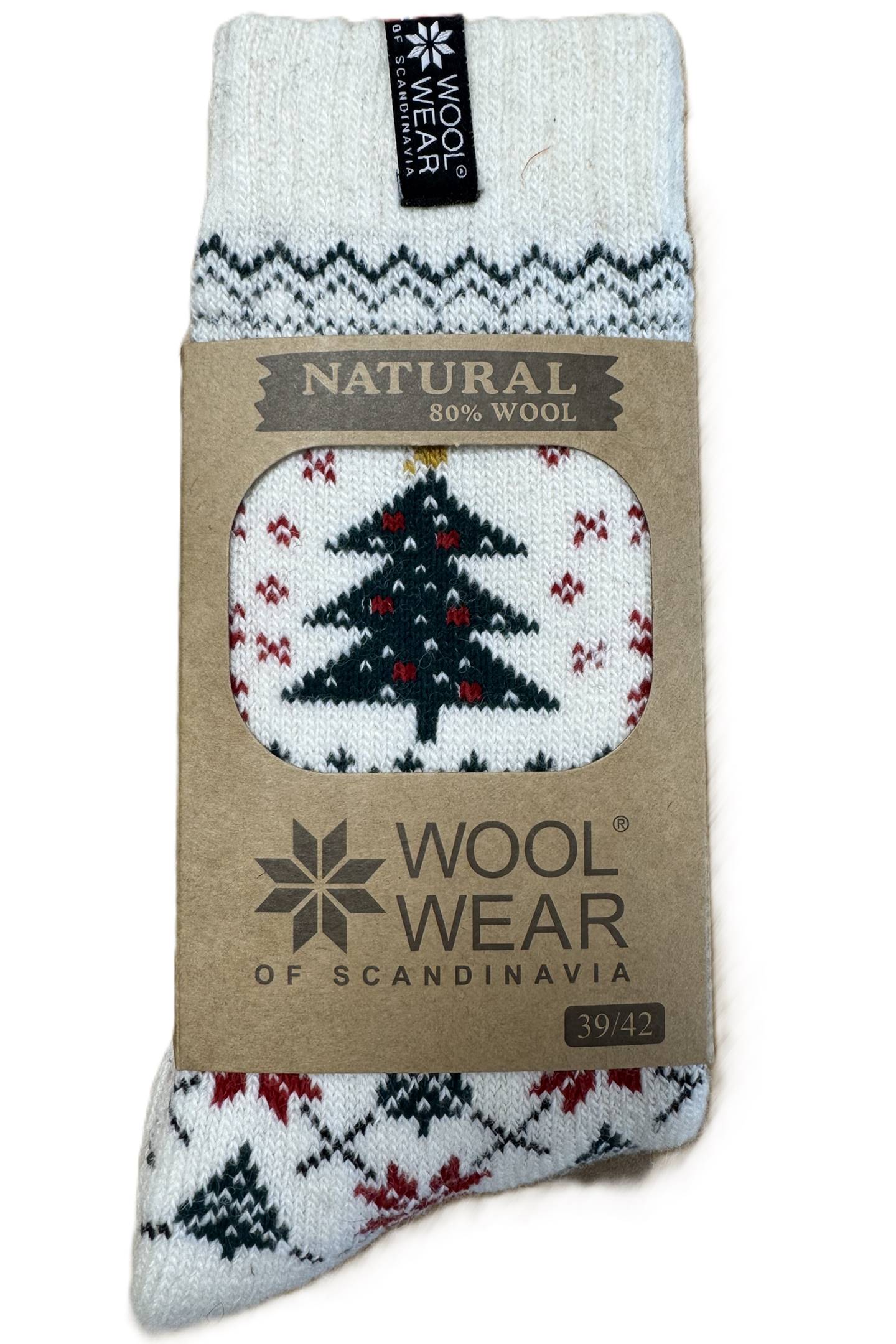 Läckra varma och mjuka Julstrumpor av 80% ull med "Julgransmotiv" och med liten vävd flagga från toppmärket WOOLWEAR of Scandinavia® och levereras i en fin återvinnings kartong.